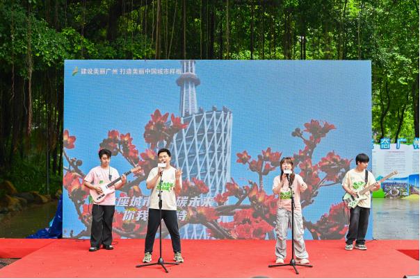 “要做个行动派 让地球更可爱,践行绿色崇拜 我为自己做表率……” 由广州市生态环境局海珠分局高翔创作并演唱的《低碳全运动起来》点燃全场热情,唱出了全民降碳让盛会更精彩的期待,吹响了全民参与生态文明建设的号角,激励着每一位市民为绿色生活贡献力量。