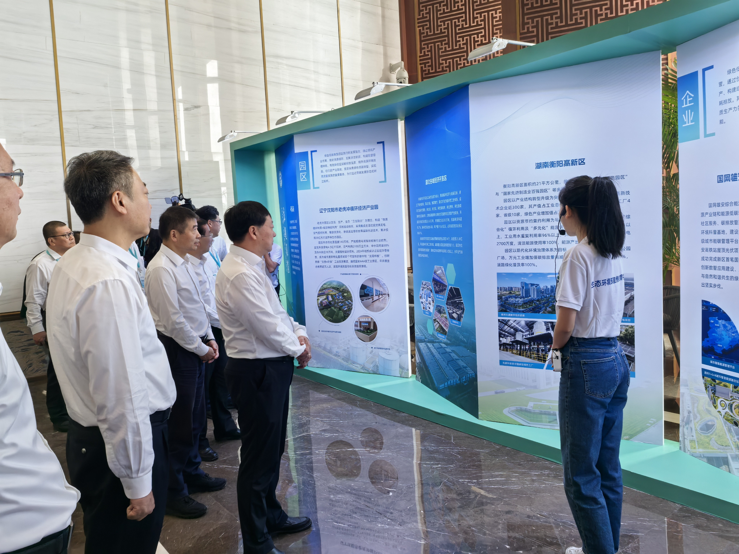 生态环境部李高副部长在全国低碳日观看衡阳高新区典型案例展板
