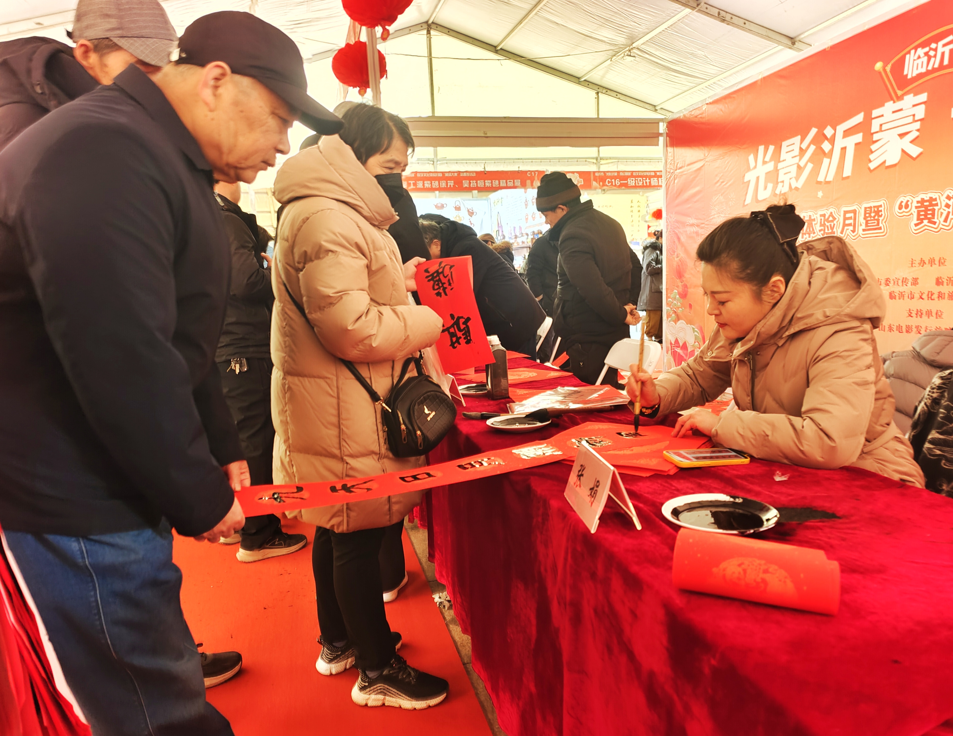 1月30日,“光影沂蒙·奇幻琅琊”数字文化体验月暨“黄河大集”新春季活动在临沂人民广场启动。其中,赠马年对联摊位格外引人。书法家们现场挥毫泼墨,义务为群众书写春联、赠送福字,这场景宛如春节前夕一道绚丽的风景线。