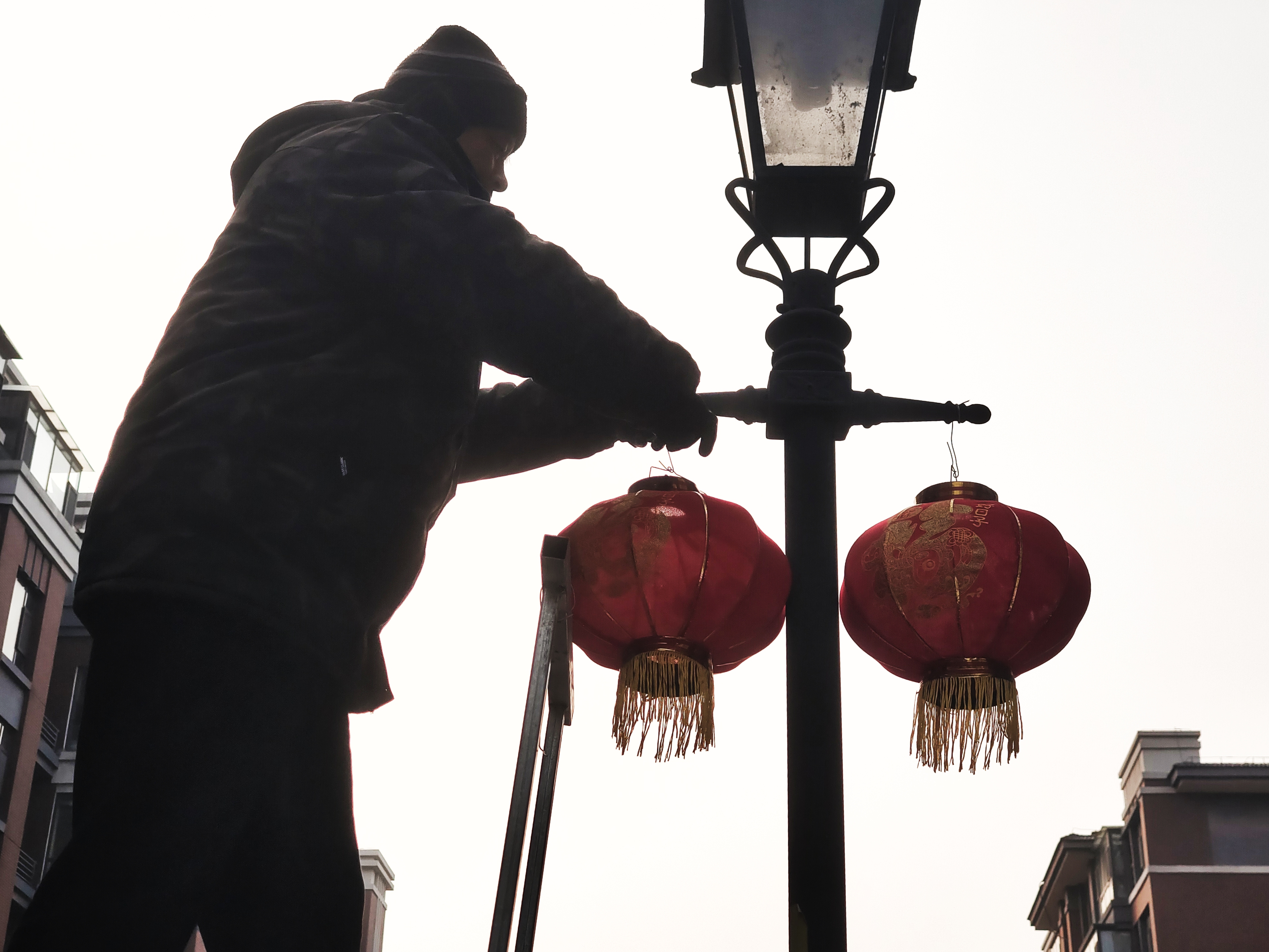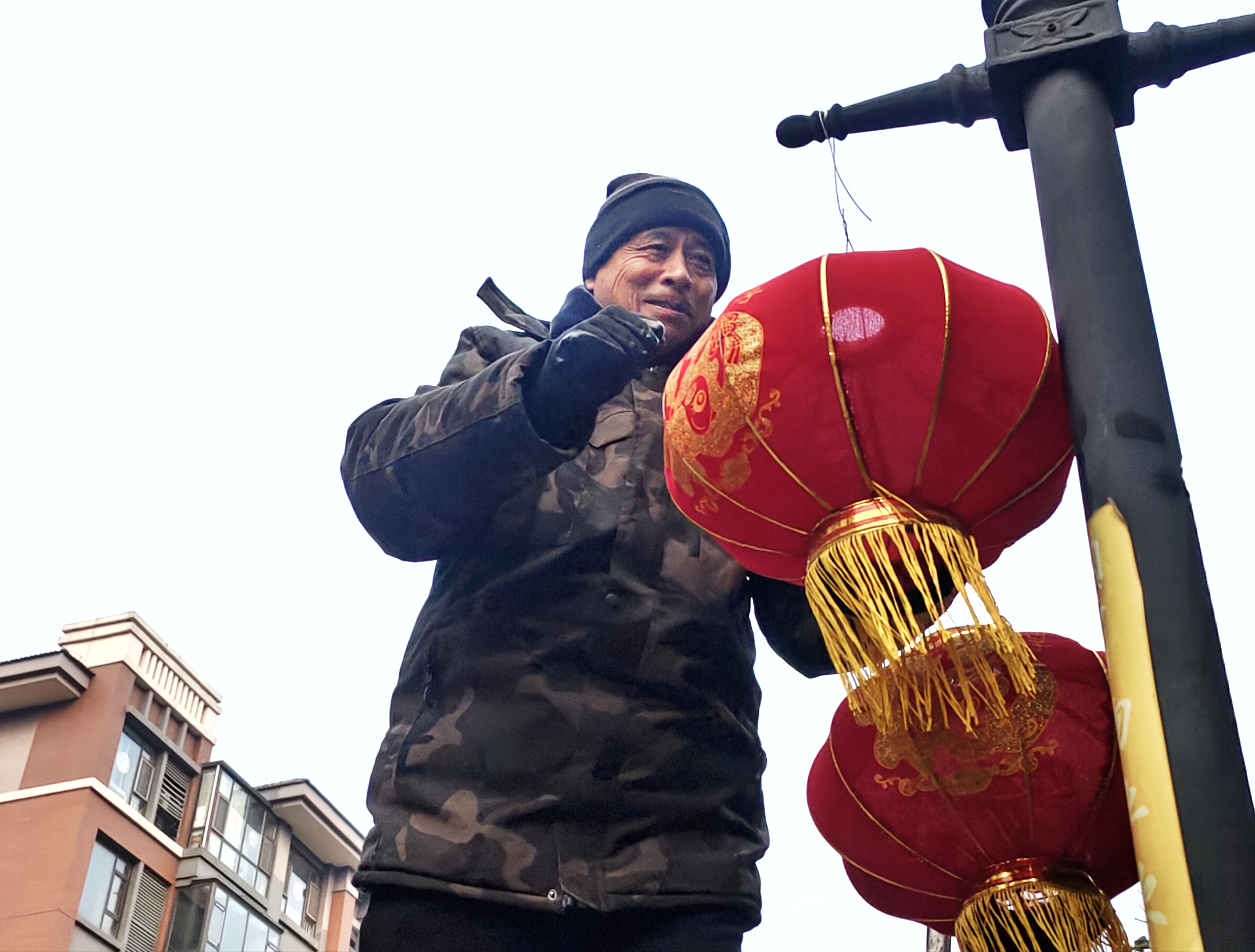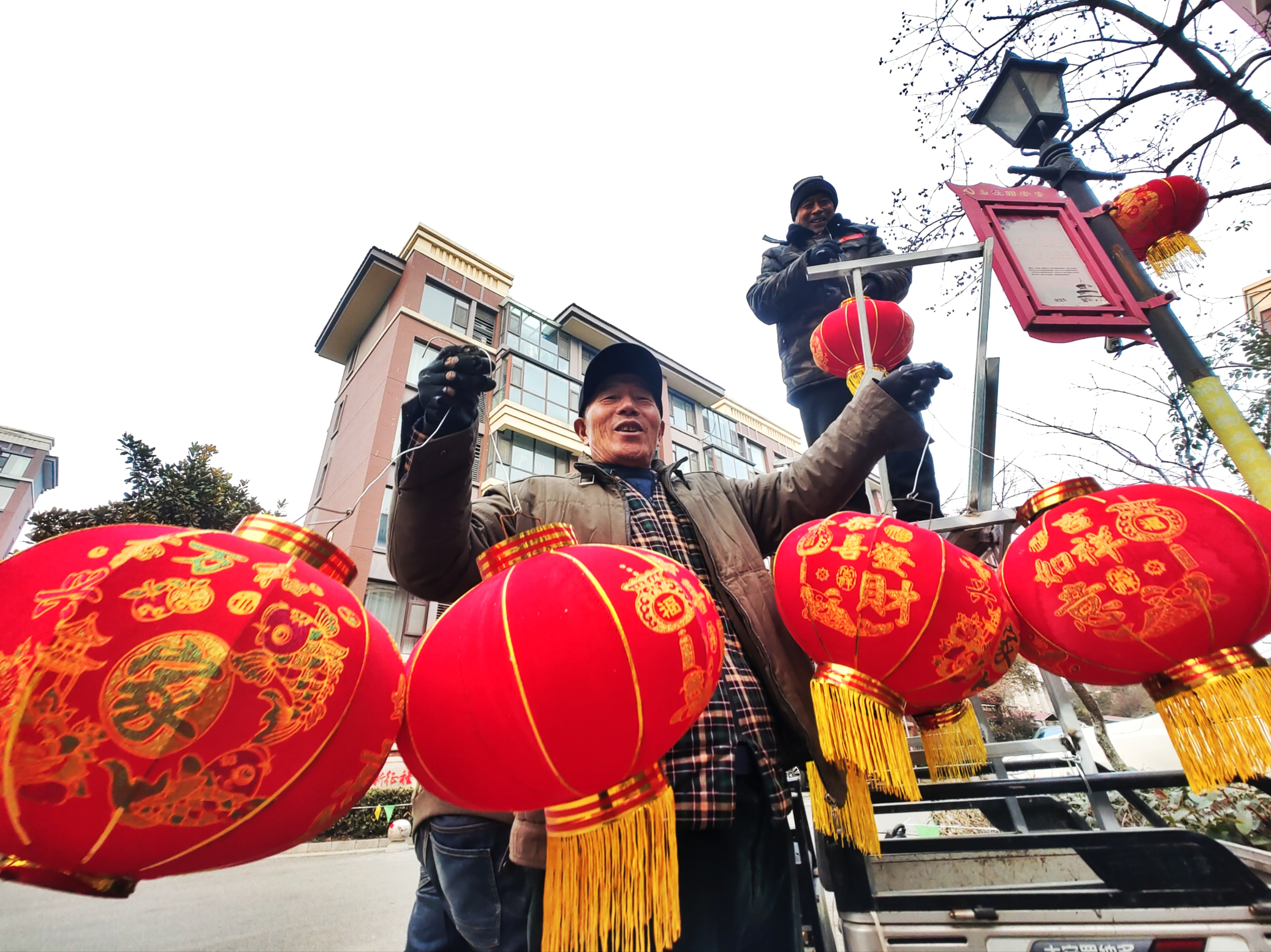 腊月十四挂灯笼 小区年味氛围浓