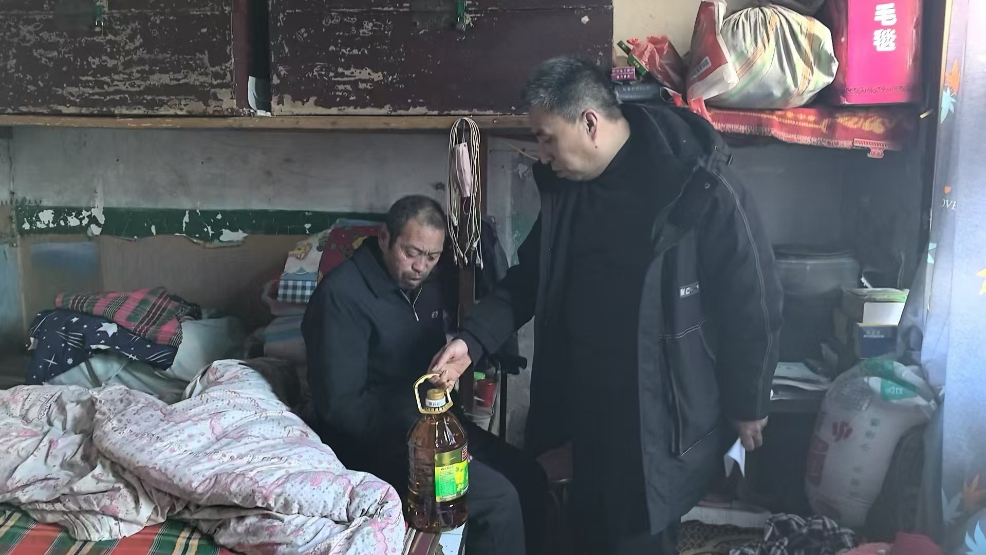 推开院门,他妹妹正扶着老人对面迎来。“小秦来了,感谢你来看我。”党绪科握住秦国强的手说。看到独臂残疾的他,秦国强一边拎着东西往屋里走,一边细细询问:“党叔,近来身体还好吧?妹子照料得咋样?”话音未落,他欣慰地点了点头。