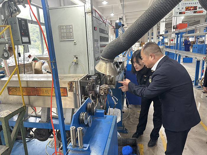 图为执法人员在天杰实业开展现场帮扶。黄美玲摄